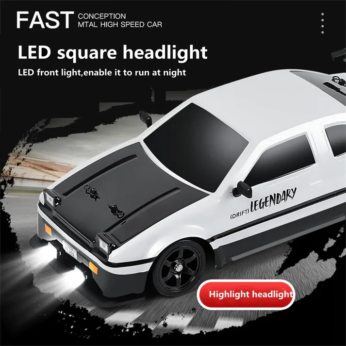 Mini RC Drift Car : The coolly designed 1/16 scale racing car is powered by a high-speed motor for the RC drift car, which can reach speeds of up to 15km/h. The RC car has a powerful and durable all-wheel drive engine for smooth driving even in fast turns.
